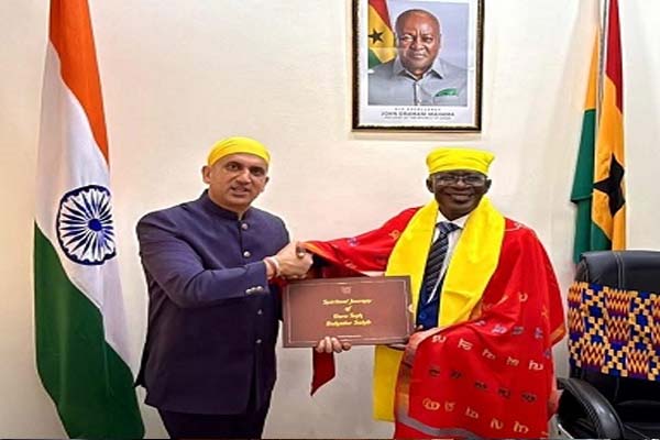 नई दिल्ली: पंजाब और घाना के बीच सांस्कृतिक और ऐतिहासिक संबंधों को मजबूत करने के उद्देश्य से पंजाब के राज्य सूचना आयुक्त हरप्रीत संधू ने नई दिल्ली में घाना के हाई कमिश्नर एच.ई. प्रो. क्वासी ओबेरी-डांसो से मुलाकात की। इस विशेष अवसर पर संधू ने उन्हें श्री गुरु तेग बहादुर साहिब जी के 350वें शहीदी दिवस को समर्पित एक विशेष पुस्तक, ऐतिहासिक स्थलों के दृश्य और पंजाबी संस्कृति के प्रतीक के रूप में एक पारंपरिक शॉल व विरासत तलवार भेंट की। यह पहल दोनों क्षेत्रों के बीच वैश्विक स्तर पर सांस्कृतिक पुल बनाने का काम करेगी।