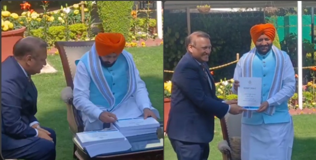 चंडीगढ़: हरियाणा के मुख्यमंत्री नायब सिंह सैनी ने आज राज्य का बजट पेश किया। बजट सत्र की शुरुआत से पहले मुख्यमंत्री ने अपने आवास पर बजट प्रतियों पर हस्ताक्षर किए। इस खास मौके पर सीएम सैनी केसरिया पगड़ी पहने नजर आए, जो राज्य के गौरव और संकल्प का प्रतीक दिखी। सदन में पहुंचते ही उन्होंने अपना बजट भाषण शुरू किया और सरकार की उपलब्धियों का लेखा-जोखा साझा किया।