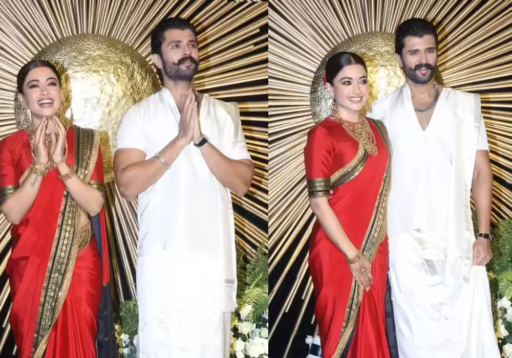 सेलिब्रिटी स्टाइलिस्ट एमी पटेल द्वारा तैयार किए गए इस लुक में विजय देवरकोंडा ने शुद्ध दक्षिण भारतीय अंदाज अपनाते हुए लुंगी पहनी, जिसमें वे बेहद प्रभावशाली लग रहे थे। वहीं, रश्मिका मंदाना ने लाल रंग की मैसूर साड़ी चुनकर सबका ध्यान अपनी ओर खींच लिया। लाल रंग शुभता, काला रंग शक्ति और सुनहरा रंग उनकी विरासत को दर्शा रहा था।